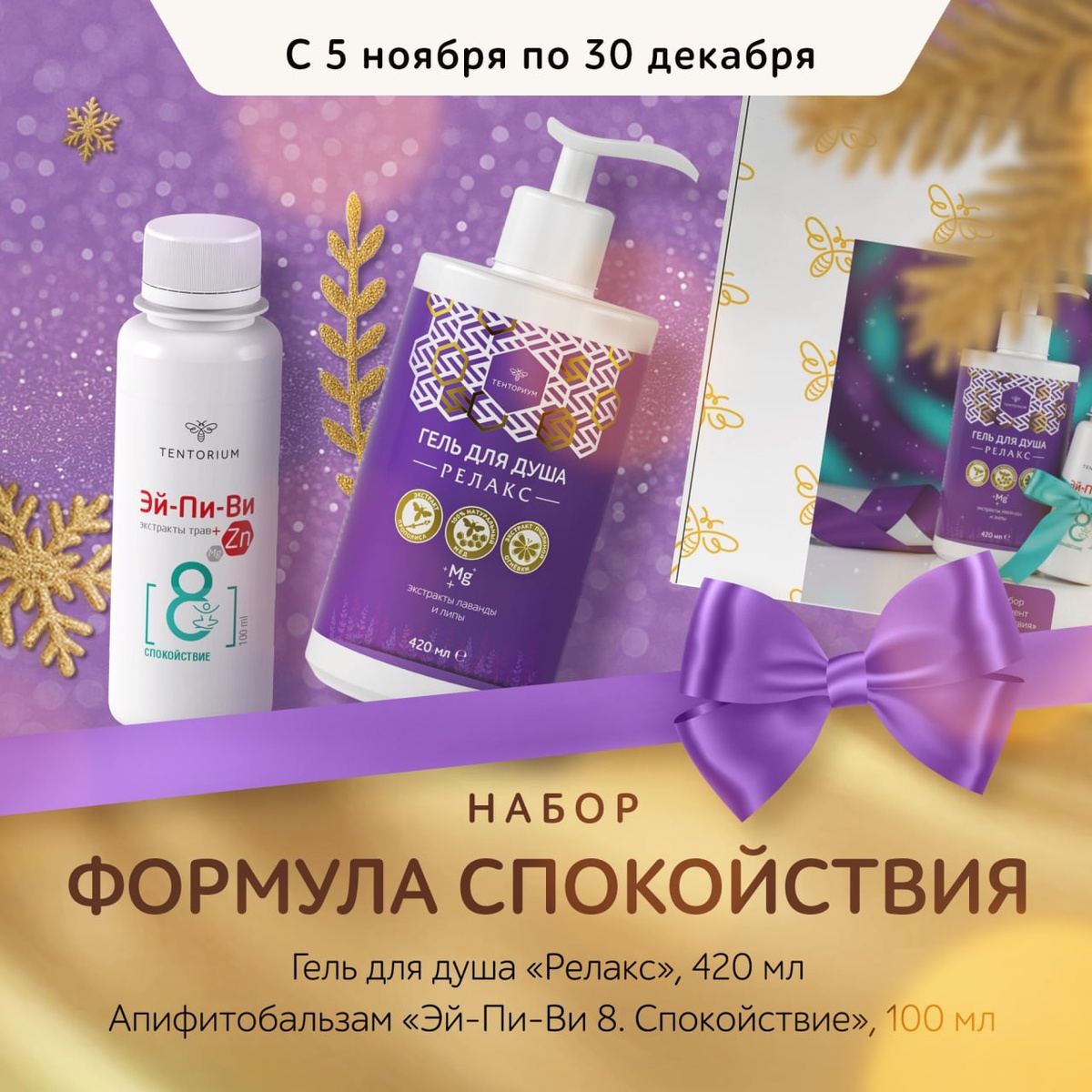 Формула спокойствия (гель для душа "Релакс" 420 мл, апифитобальзам "Эй-Пи-Ви 8. Спокойствие") с выгодой 5%.