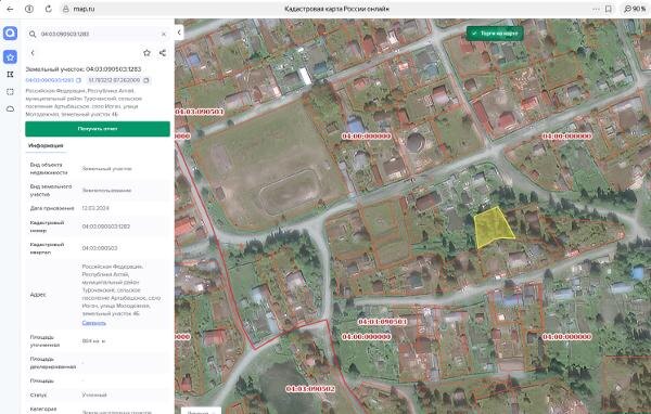Название: Земельный участок с кадастровым номером 04:03:090503:1283 площадь 864 по адресу Российская Федерация, Республика Алтай