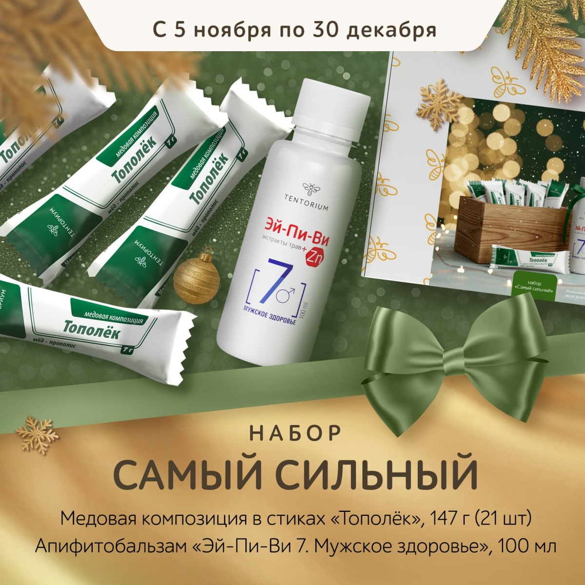 🔹 Самый сильный (шоу-бокс медовой композиции в стиках "Тополёк", апифитобальзам "Эй-Пи-Ви 7. Мужское здоровье") с выгодой 10%.