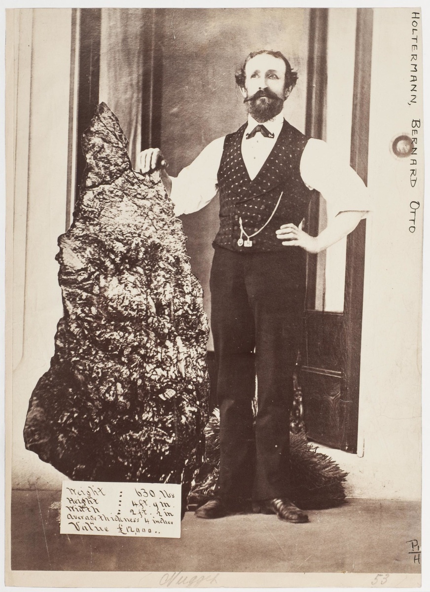 В истории золотодобычи есть находки, которые становятся легендами. Одна из них — гигантская «Плита Холтермана», обнаруженная в 1872 году в Австралии. Это был не просто самородок, а цельная золотосодержащая плита невероятных размеров, рекорд которой не побит до сих пор. Обнаружение: удача на руднике «Хилл-Энд» В октябре 1872 года на золотом руднике «Звезда Надежды» в районе Хилл-Энд, Новый Южный Уэльс, старатели во главе с немцем Бернхардом Холтерманом и его партнером Хьюго Луисом сделали находку, которая казалась нереальной. Вместо отдельного самородка их взорам предстала огромная плита из кварца и сланца, буквально пронизанная жилами чистого золота. Размеры плиты были колоссальными: около 144 см в длину, 66 см в ширину и 10 см в толщину. Но самое впечатляющее скрывалось внутри — по оценкам, общая масса плиты составляла около 235-276 кг, из которых примерно 83-93 кг приходилось на чистое золото. Чтобы представить этот масштаб, самый большой сохранившийся цельнометаллический самородок «