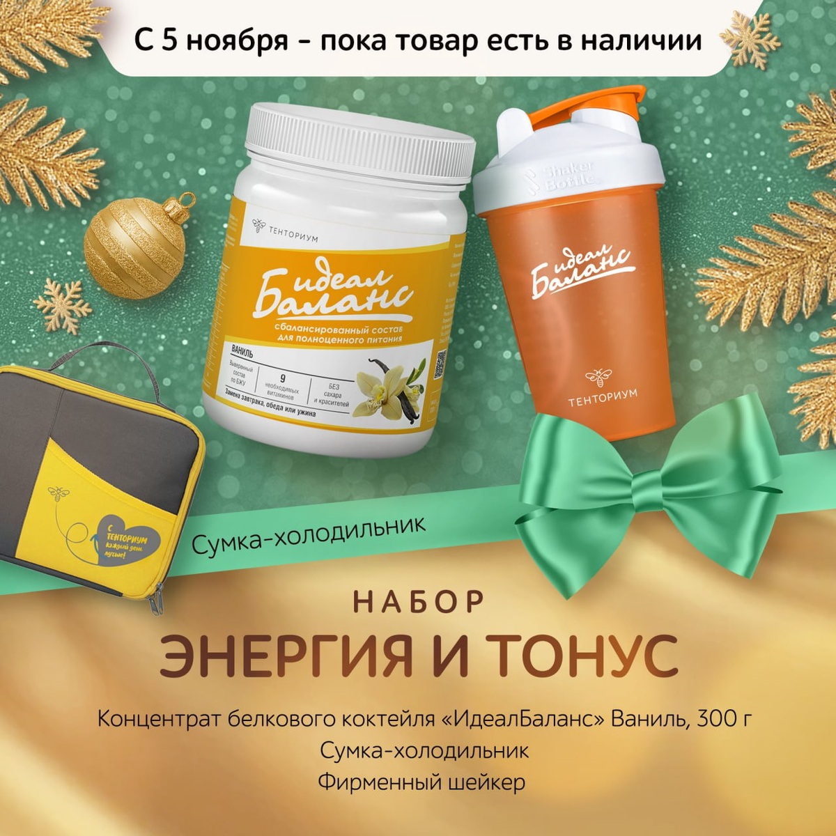 🔹Энергия и тонус (белковый коктейль "ИдеалБаланс" Ваниль 300 г, фирменный шейкер, сумка-холодильник) с выгодой
