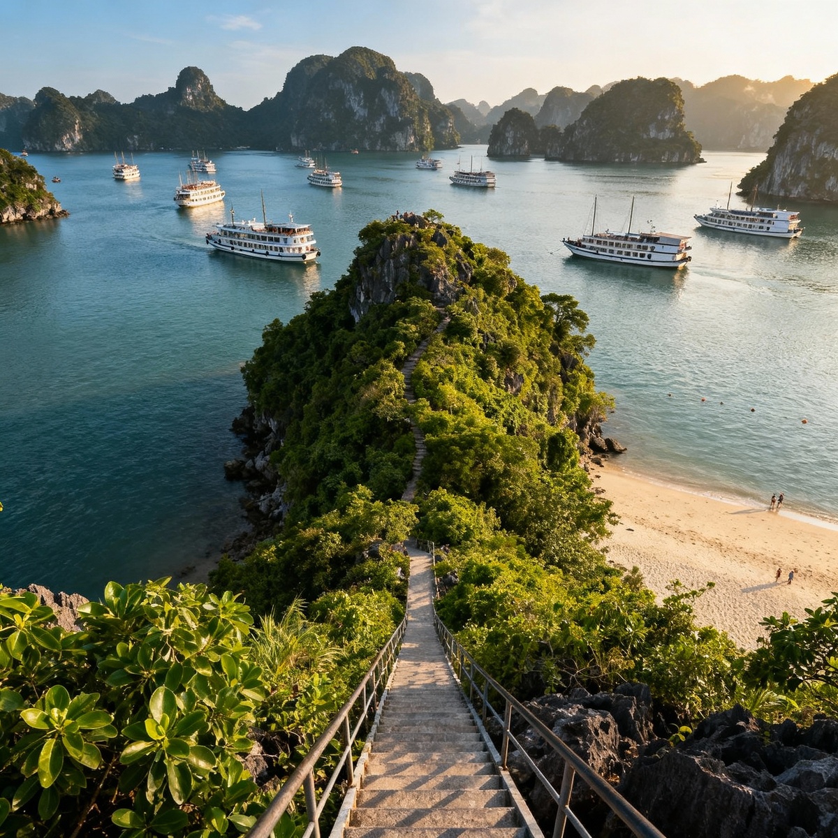 Бухта Халонг — "визитная карточка" Вьетнама, одна из самых живописных бухт Азии. Здесь можно найти уникальные острова, впечатляющие пещеры, панорамные точки, культурные места и аутентичные деревни — всё для насыщенного маршрута. Самое популярное место для панорамных видов. На острове песчаный пляж с кристально чистой водой, а со смотровой площадки открывается лучший обзор на бухту (нужно преодолеть 350 ступеней). Есть памятник космонавту Герману Титову. Отличная точка для фотографий и купания в море. Главная и самая длинная пещера бухты. Внутри залы с фантастическими сталактитами и сталагмитами, причудливые формы напоминают животных и морских существ. Хорошо организованы проходы, подсветка, безопасные ступени. Одно из самых красивых природных чудес региона. Группа маленьких островков и лагун. Популярное место для каякинга, небольших пляжей и уединённых прогулок на лодках. Рядом — рыбацкая деревня, где можно познакомиться с бытом местных и попробовать свежие морепродукты. Живописна