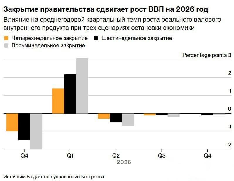 ⚠️ ШАТДАУН В США — 36 ДНЕЙ. НОВЫЙ РЕКОРД. Когда кажется, что дальше уже некуда — Америка показывает, что может и глубже. Правительство США остановлено уже 36 дней — это самый длинный шатдаун в истории страны. Предыдущий рекорд (35 дней) тоже принадлежал Трампу — в 2018 году. 💸 Что происходит • 600 000 госслужащих работают без зарплаты, ещё 650 000 — в неоплачиваемом отпуске. • Закрыты CDC, приостановлена публикация данных по гриппу и COVID. • FAFSA (студенческие гранты) и налоговые возвраты — на паузе. • В авиации — задержки и массовые отмены: диспетчеры тоже под санкциями бюджета. • Продовольственные выплаты урезаны, запасов хватит лишь на часть ноября. 📊 По данным ABC/Ipsos: 45 % американцев винят республиканцев, 33 % — демократов. Остальные просто устали. ⚙️ Что говорят экономисты Если шатдаун затянется до 8 недель — ВВП США просядет на 2 п.п., а экономика потеряет десятки миллиардов долларов (Investopedia). Некоторые аналитики уже называют это «самострелом федеральног