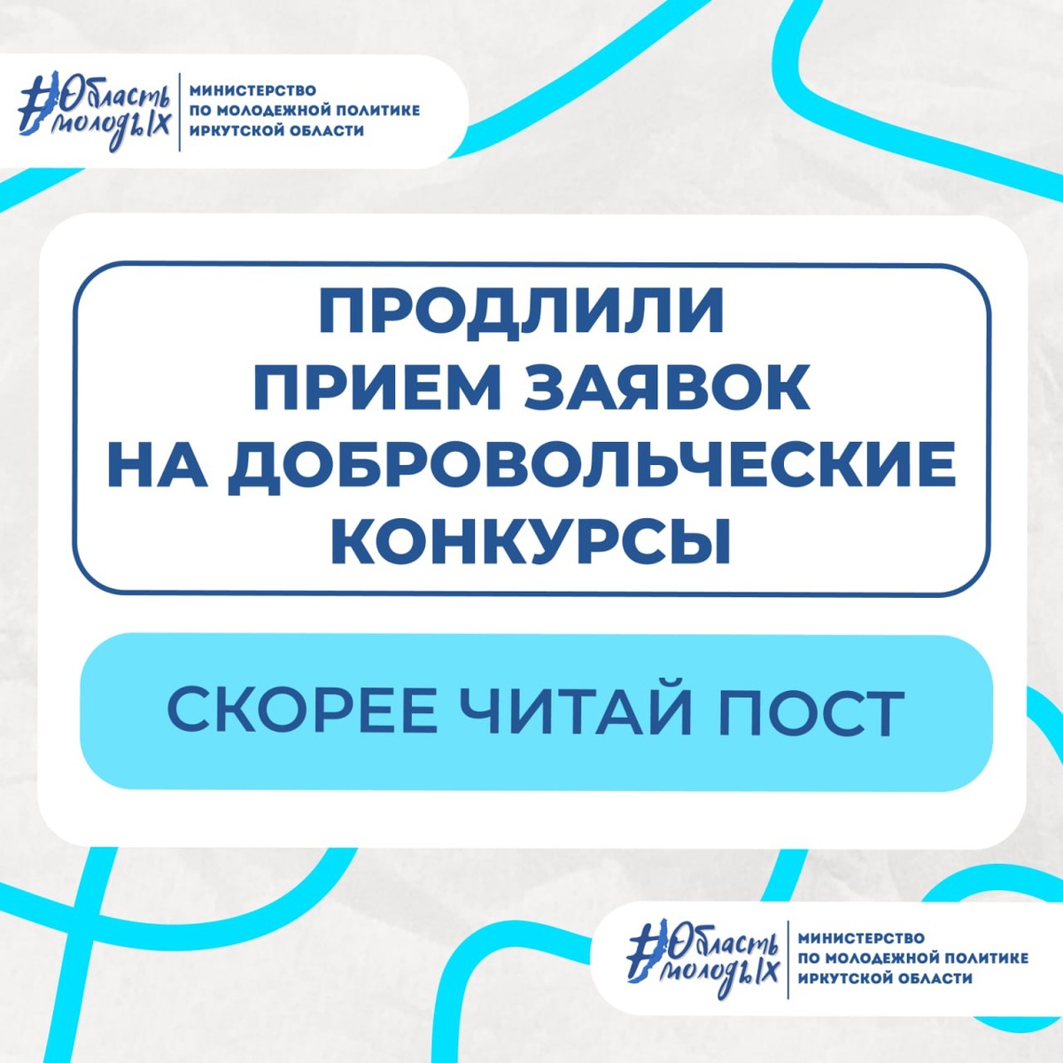 👍 Срочно всем, кто хотел, но не успел! Продлили прием заявок добровольческих конкурсов! До 10 ноября: 📌 Конкурс на присуждение знака «Почетный доброволец Иркутской области». Для самых опытных и заслуженных добровольцев с выдающимися достижениями. До 16 ноября: 📌 Региональный конкурс «Лучший доброволец (волонтёр) Иркутской области». Для активных волонтёров, готовых подтвердить свой опыт и решить практические кейсы; 📌 Областной конкурс «Фокус на добро». Для журналистов и блогеров, которые освещают в СМИ и соцсетях волонтерскую деятельность и делают добрые дела видимыми. ⚡️ Подробности о каждом конкурсе, положения и ссылки для регистрации - в нашем предыдущем посте. Не упусти свой шанс и получи заслуженное признание! Мероприятие реализовано в рамках федерального проекта «Мы вместе (Воспитание гармонично развитой личности)» национального проекта «Молодежь и дети». ▫️ Подписывайтесь на Область Молодых | Подписывайтесь на наши социальные сети