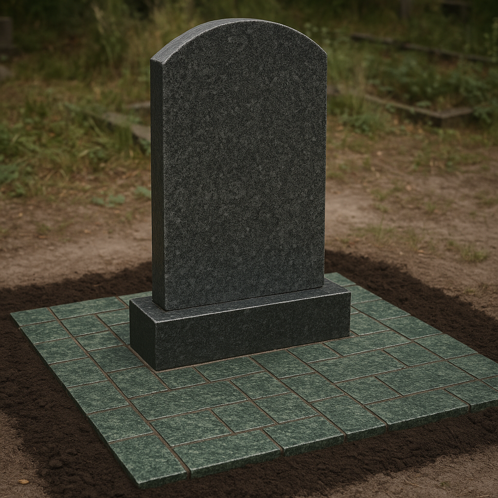 Результатом становится не просто оформленное место захоронения, а целостный архитектурный ансамбль, где каждый элемент находится на своём месте. Брусчатка из зелёного гранита придаёт мемориалу благородную сдержанность и в то же время — выразительную индивидуальность.
