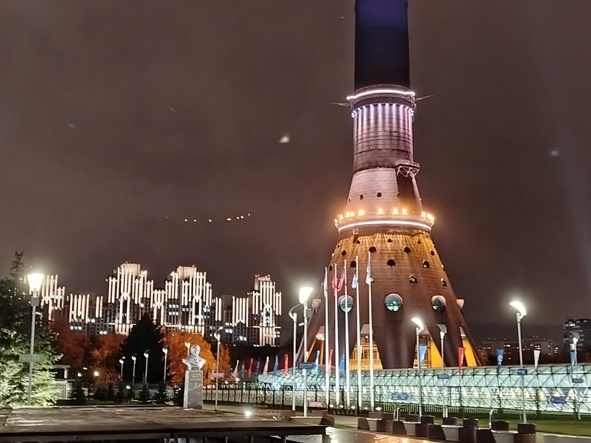Пока стояли в очереди на вход, увидели ярко расцвеченную телебашню.