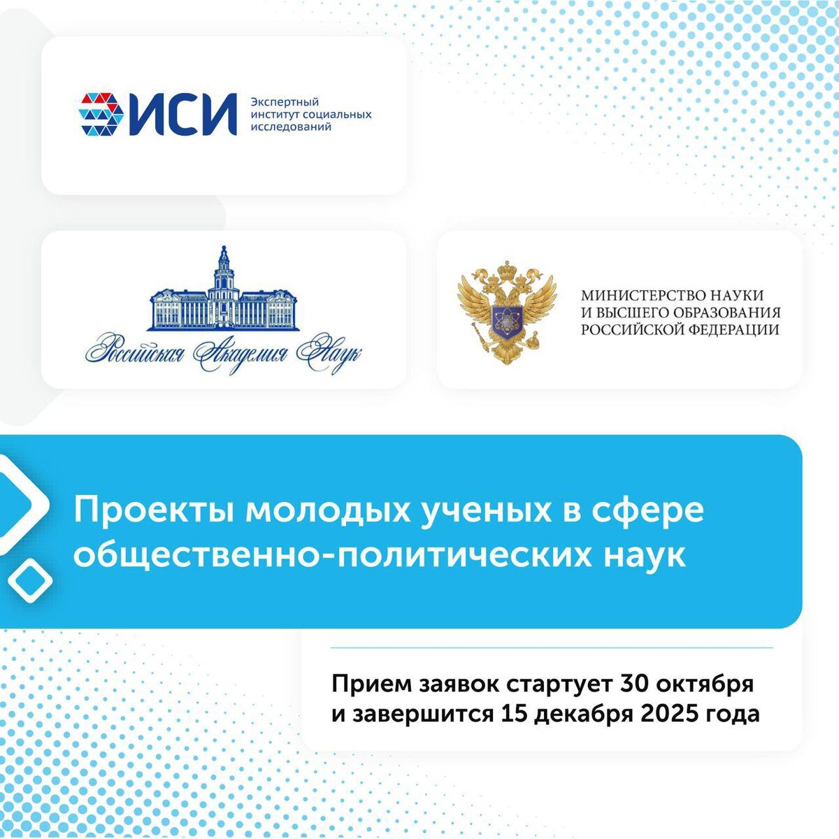 Проекты молодых ученых в сфере общественно-политических наук 🧬 ЭИСИ совместно с Минобрнауки РФ и РАН начинает очередной отбор проектов научных исследований в сфере общественно-политических наук. 📆 Прием заявок стартует 30 октября и завершится 15 декабря. В числе тематических направлений проектов: — Социальная архитектура и сценарии будущего развития российского государства-цивилизации; — Идентичность в контексте коммуникаций; — Актуальные общественные представления о России; — Специфика трансляции традиционных ценностей в публичном пространстве и другое. ✔️ Подача заявок осуществляется через Единую государственную информационную систему учета научно-исследовательских, опытно-конструкторских и технологических работ гражданского назначения — ЕГИСУ НИОКТР. ‼️ Для подачи заявок от ГАУГН просим обращаться в Научно-инновационное управление: - Адрес электронной почты info@gaugn.ru - Контактный телефон +7 (499) 238-23-50 #конкурс #наука #МинобрнаукиРФ #ЭИСИ #ГАУГН
