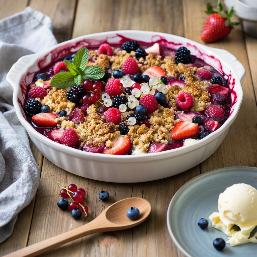 3. Аккуратно перемешайте ложкой, стараясь сохранить целостность ягод. Шаг 2: Сделайте крошку 1. В отдельной миске соедините муку, коричневый сахар и корицу.