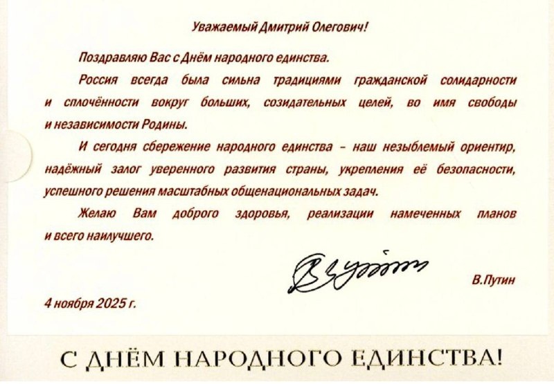 Поздравление с Днем народного единства от Президента РФ В.В. Путина Президент Российской Федерации Владимир Владимирович Путин поздравил Московский архитектурный институт и его ректора, президента РААСН, академика Дмитрия Олеговича Швидковского с Днем народного единства… https://www.newsmarhi.ru/2025/11/05/36066/ #день_народного_единства #поздравление_от_Президента_РФ #ректор_МАрхИ