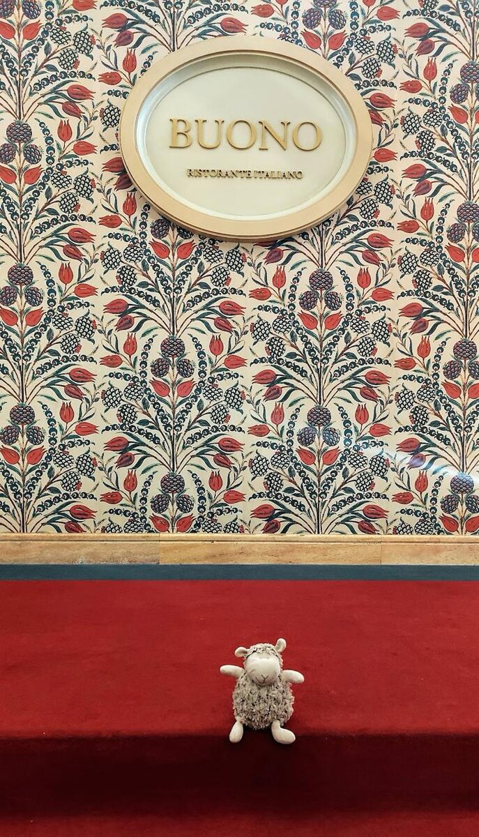 BUONO | Radisson Collection Hotel, Moscow В воскресенье Овца Борис решил, что ограничивать себя — не в его правилах, и поднялся под шпиль Radisson Collection сразу по двум причинам: попробовать фестивальный сет МГФ и заодно проверить, как поживают воскресные бранчи в BUONO. На кухне Джузеппе Дави не оказалось — встречал нас его коллега Анатолий Заботкин, спокойный, уверенный в себе молодой мужчина. Именно он рассказал идею сета, угощал блюдами и заодно показал своё авторское творение — десерт «тирамису-сфера», про него чуть ниже. Старт получился эффектным: дуэт гребешка и морского ежа — красиво, йодисто, с нужной кислотой. Овца Борис долго рассматривал ежа, но всё же сьел до последней иголки. Равиолли alla carbonara с тройной текстурой соуса — занятный эксперимент, но по факту просто хорошие равиолли с соусом под соусом 😜 А вот черная треска с картофельным пармантье — безоговорочное попадание: нежная, плотная, с тёплым итальянским послевкусием. Ребро, выдержанное трое суток в марин