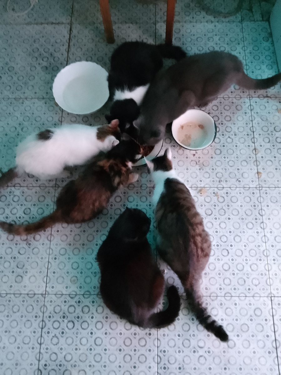 В общем, список можно продолжать. Процесс кормления захватывает. Учитывая, что трехкилограммового пакета хватает на несколько дней. Однажды Бомж приволок крысу, и все остальные кошки на нее охотились и упустили. Только Димасик караулил до самого утра, выждал момент и свернул ей голову. Мы проснулись от предсмертного крысиного писка.