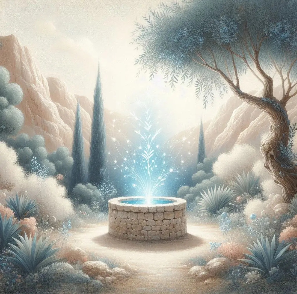 П: Я на тропинке, по которой идут женщины с кувшинами на голове. Они несут воду. Иисуса учат взаимодействовать с водой. Женщины из кувшинов сливают воду в огромный чан, а мальчика учат делать заговоры на воду, опустив туда руки. Под его воздействием вода может менять цвет. Его учат изменять физические свойства воды.