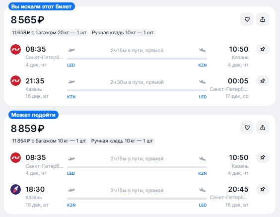 ✈️Санкт-Петербург - Казань, туда и обратно от 8670 рублей