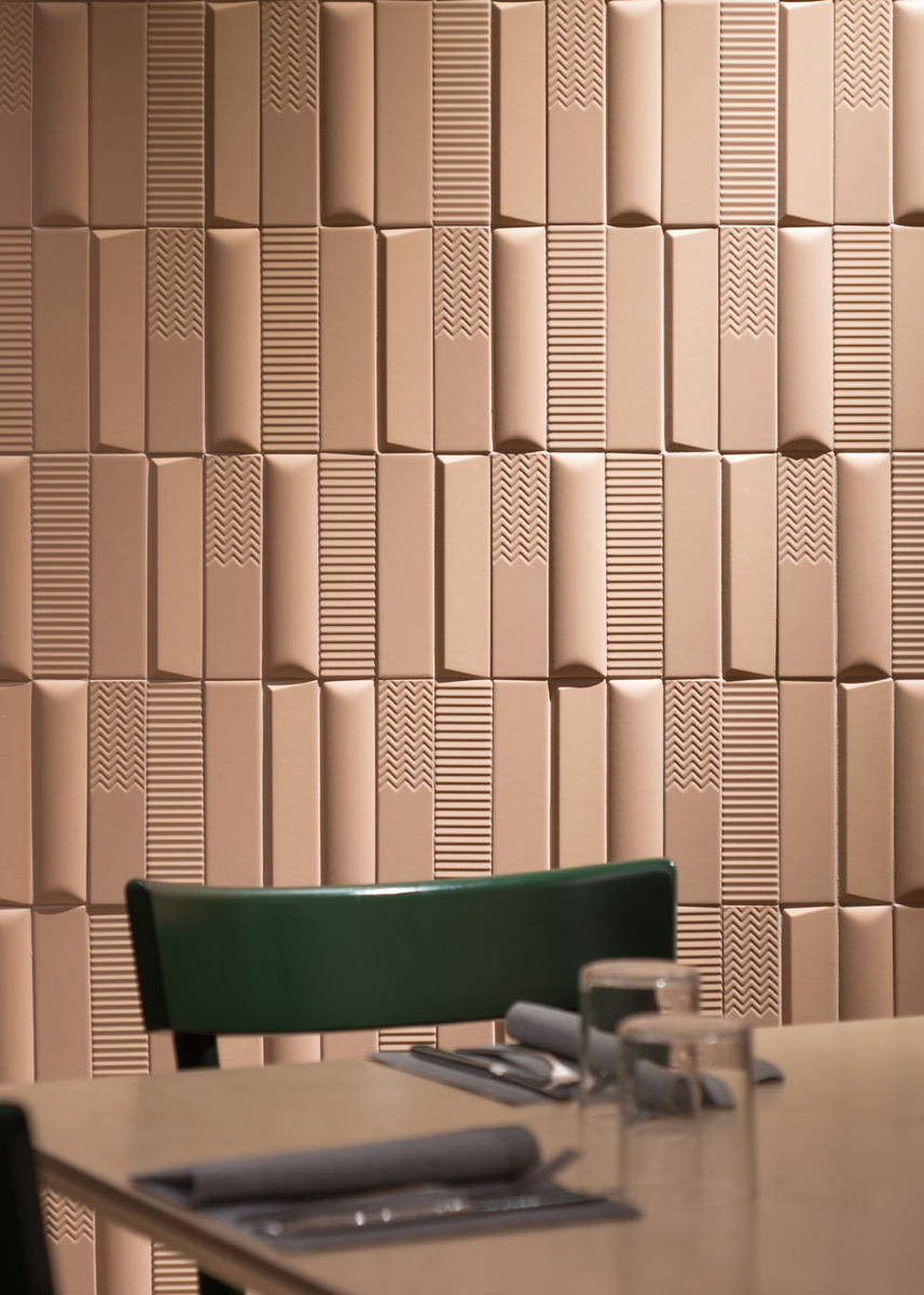 В дизайне интерьеров современных кафе и ресторанов плитка уже давно перестала быть фоновым материалом. Она превратилась в рабочий инструмент создания атмосферы, способный сформировать уникальный характер пространства и пригласить гостей насладиться не только вкусом, но и неповторимой эстетикой. Чтобы проиллюстрировать эту трансформацию, мы собрали для вас примеры проектов 41zero42, где плитка не просто присутствует, а играет одну из главных ролей. Несмотря на кажущуюся «прямолинейность» внутреннего пространства ресторана в Катании, дизайнеру Costa Architetti удалось придать этому интерьеру современное и динамичное звучание. Ключевым в достижении такого эффекта стало применение плитки 41zero42 из коллекции Biscuit. Уникальность этой коллекции заключается в разнообразии поверхностей: она сочетает в себе плоские, выпуклые, 3D и рельефные элементы. Именно эта многогранность позволила добавить пространству объём и глубину, трансформировав изначально строгую геометрию в выразительный и актуа