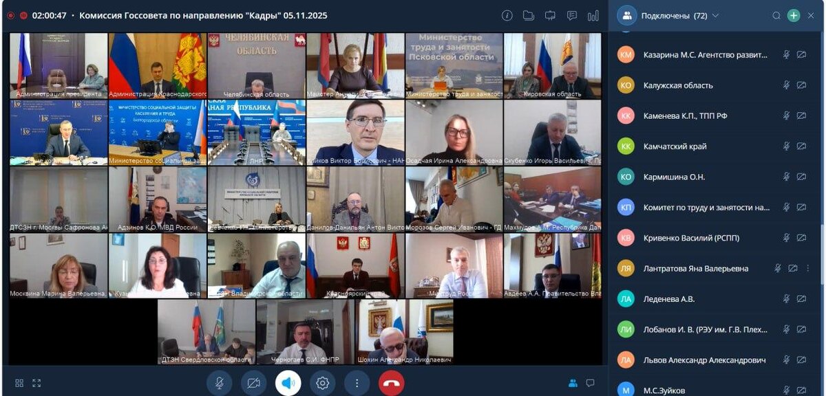 Приняла участие в заседании комиссии Государственного Совета РФ по направлению «Кадры», посвящённом правовому регулированию трудовой