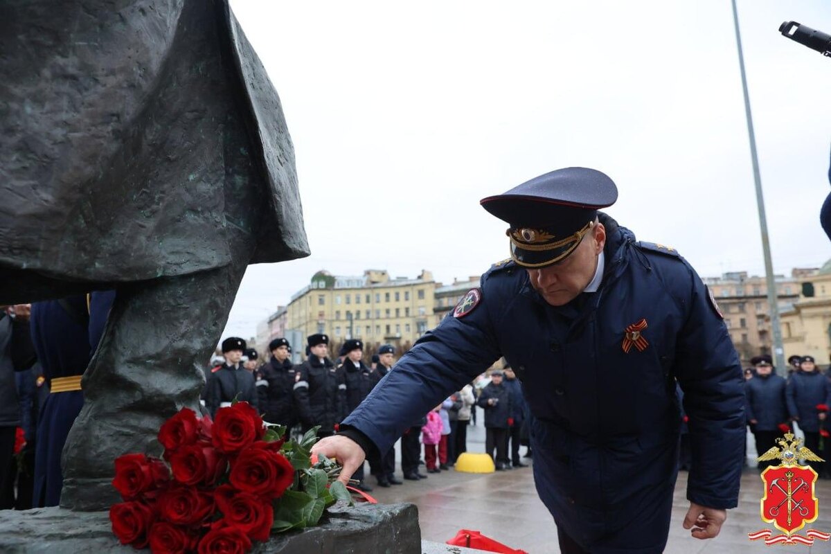 На площади Стачек в Санкт-Петербурге состоялась торжественная церемония возложения цветов к памятнику «Сотрудникам милиции, погибшим в годы блокады Ленинграда». Мероприятие прошло в преддверии Дня полиции России и было приурочено ко Дню памяти сотрудников органов внутренних дел, погибших при исполнении служебных обязанностей. В мероприятии приняли участие руководство ГУ МВД России по Санкт-Петербургу и Ленинградской области во главе с начальником ГУ МВД России генерал-лейтенантом полиции Романом Плугиным, руководители районных подразделений полиции, руководители образовательных организаций МВД России, курсанты ведомственных образовательных учреждений, суворовцы, ветераны, юнармейцы и учащиеся профильного полицейского класса. В своем выступлении Роман Плугин напомнил о подвиге сержанта милиции Павла Винокурцева, ставшего прообразом для создания памятника. А также отметил, что данный памятник – это не только история одного героического поступка, а собирательный образ сотрудников органов