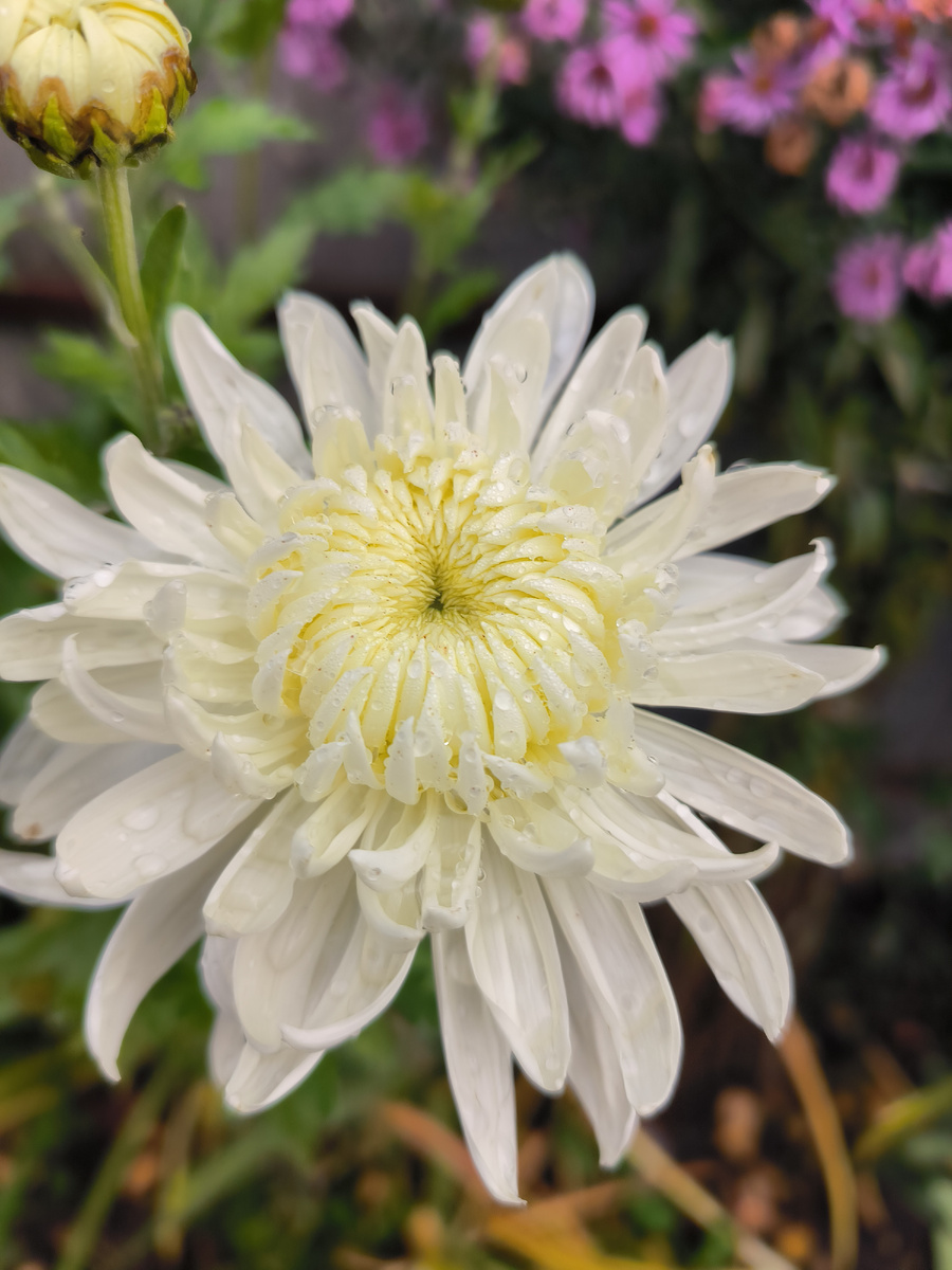 - Друзья, сегодня я хочу сделать обзор цветущей поздней белой хризантемы.