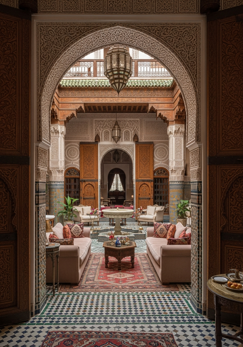 Каждый номер — это произведение искусства с оригинальной мебелью, коврами ручной работы и видами на внутренний двор или медину. Гости в восторге от ресторана L'Ambre с изысканной авторской кухней, роскошного спа-центра Riad Fes by Cinq Mondes и панорамной террасы на крыше. Бассейн во внутреннем андалузском дворике создаёт атмосферу уединённого оазиса.
