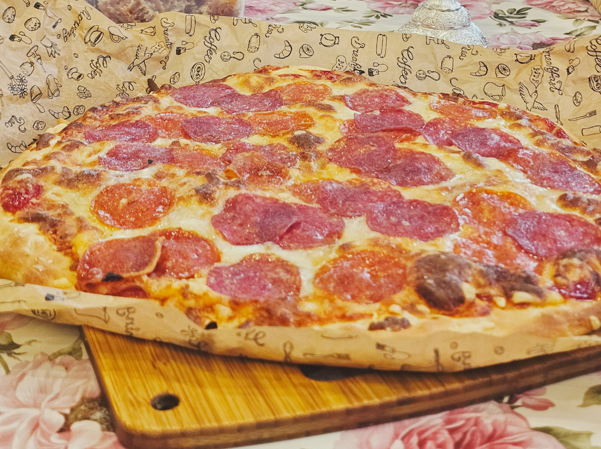 Пицца, нельзя не соблзниться, с пеперони, как в лучших ресторанах Италии. Воздушное тесто, хрустящая корочка, сочная начинка, в отличии от многих пицц, которые малосьедобны после остывания, пицца по этому рецепту остается вкусной и в холодном виде. Первая пицца, которую я испекла много лет назад, была пицца по рецепту Пицца Хат из какого-то журнала, это конечно была пицца по-русски с добавлением сервелата и маринованных огурцов и большого количества расплавленного сыра, потом было много пицц в Италии и разных рецептов, конечно, новые я продолжаю пробовать и сейчас ;). Это один из самых удачных рецептов , без долгого ожидания и танцев с бубнами , при этом это традиционное итальянсаая выпечка на воде и оливковом масле, молоко и яйца, сливочное масло, в тесто для пиццы не кладут никогда и нигде , это уже не итальянская пицца и не пицца вообще , а пирог ;) Чтобы получилась именно настоящая пицца , нужно соблюдать технологию ее приготовления, тесто должно быть выдержано и продукты ук
