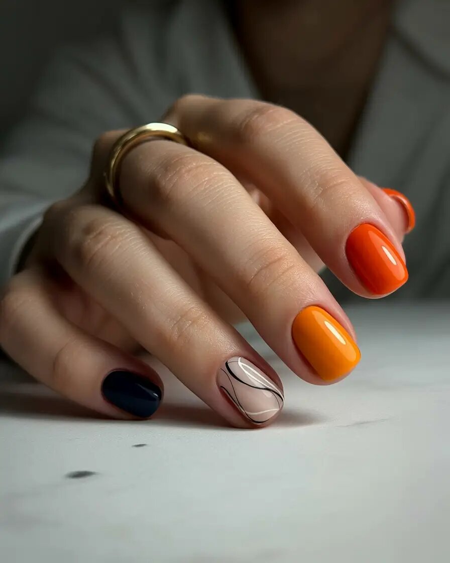 Ноябрь - это идеальное время для того, чтобы пересмотреть любимые фильмы, укутавшись в теплый плед, встретиться с друзьями за чашечкой кофе, обновить гардероб, и конечно же, сделать новый маникюр. Вне зависимости от того, какие дизайны вы предпочитаете - минималистичные или замысловатые, вы найдете в нашей подборке подходящий для себя вариант. Этот лаконичный дизайн ногтей с минималистичными абстрактными узорами на акцентных ногтях позволит добавить изюминку в повседневный образ. Поскольку узоры имеют произвольную форму, процесс создания такого нейл-арта предельно прост, что делает его доступным даже для начинающих мастеров. Этот маникюр сочетает в себе все самые элегантные тренды нейл-индустрии - благородный бордовый цвет, сияющий золотистый хром и покрытие в дорогом оттенке слоновой кости. Этот микс выглядит изысканно и роскошно. Он станет прекрасным дополнением вечернего образа. Главное преимущество такого маникюра заключается в его универсальности. Горчичный цвет прекрасно сочет