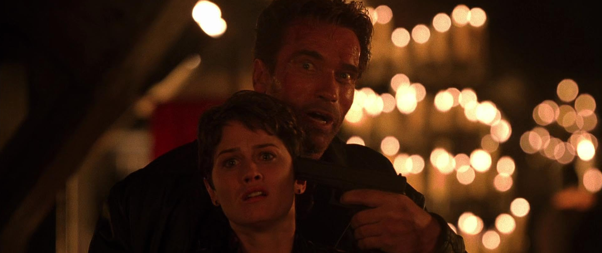 Бывший полицейский, которого играет Шварценеггер, проходит путь от отчаявшегося алкаша с револьвером у виска до спасителя всего человечества. И в финале жертвует собой на алтаре какой-то нью-йоркской церкви. Но перед этим он сражается с демонами при помощи разнообразного стрелкового оружия, стреляет в дьявола из гранатомёта и разрушает полгорода. Вечная классика.