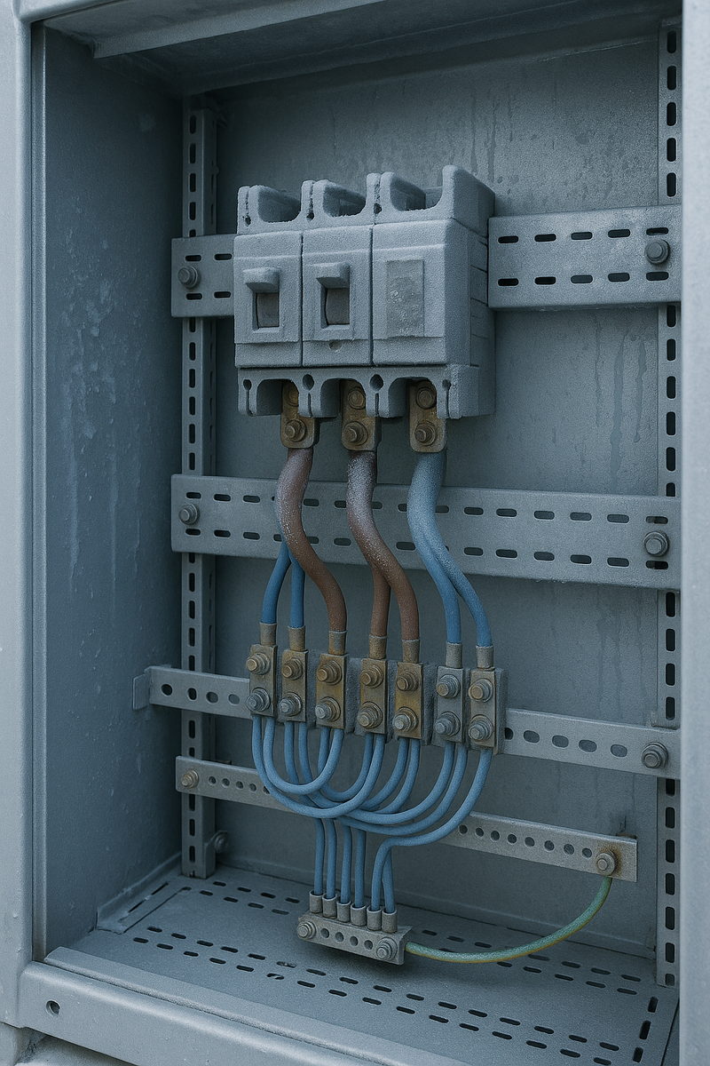 Щиты и шкафы остывают до нулевой температуры, потом нагреваются при подаче нагрузки — металл «дышит», болты сжимаются и ослабевают.