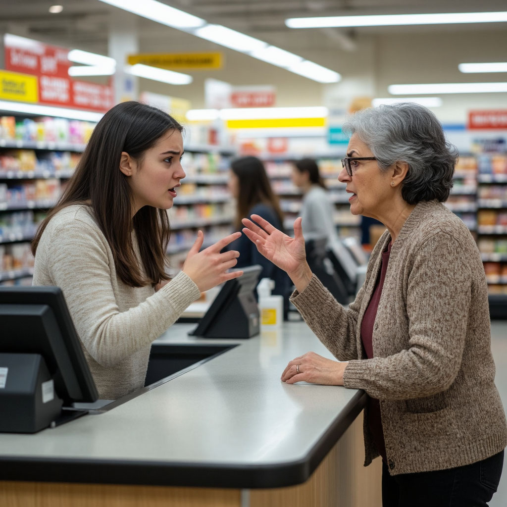 Голос пенсионерки звучал всё резче, каждое слово — удар. Кассирша опустила глаза, пальцы её дрожали, словно листья на ветру.