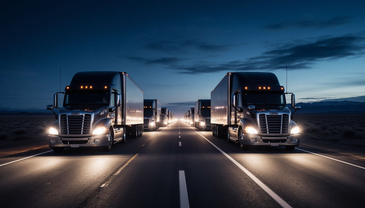 Но колонна не кончалась. Фуры шли одна за другой, с равными интервалами, словно части одного бесконечного механического поезда. Воздух в кабине стал густым и тяжёлым. Запах солярки и табака сменился чем-то другим — сладковатым, приторным запахом тления и старой гари.