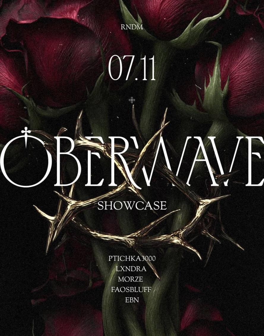OBERWAVE SHOWCASE @ RNDM / 7 ноября Переводим дух после масштабного девятилетия в Москве и Петербурге, собираясь на камерную вечеринку с друзьями и резидентами Обервейв. Музыка будет под стать погоде — сумрачная и невеселая. Поиграем нью бит, бади мьюзик и разного рода вейв: сначала помедленнее, а потом, конечно же, пожестче. В общем, кто был — тот знает. Всем остальным рекомендуем один раз увидеть и выпустить своих внутренних демонов прогуляться — это как раз та ночь, когда за такое ничего не будет. PTICHKA3000 LXNDRA MORZE FAOSBLUFF EBN 🎫 Билеты 📆 7 ноября, 23:00 – 06:00 📍 RNDM, Москва, Наставнический пер., 13/15с3