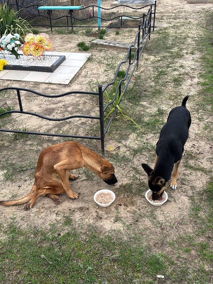 Две собаки. Заброшенное кладбище в Ростовской области.
