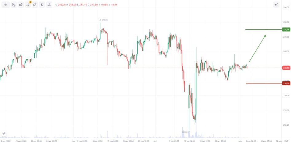 📈 ПАО «Россети Ленэнерго» Тикер: #LSNGP Идея: Long ⬆️ Срок идеи: 3-4 недели Цель: 275,25 руб. Потенциал идеи: 10,32% Объем входа: 6% Стоп-приказ: 238,40 руб. 📊 Технический анализ Бумага сохраняет восходящий тренд: после пробоя ключевой отметки и уровня сопротивления цена вышла из консолидации и закрепилась выше. Возврат к зеркальному уровню завершился отбоем от уровня поддержки. При объеме позиции в 6% и выставлении стоп-заявки на уровне 238,40 руб., риск на портфель составит 0,27%. Соотношение прибыль/риск составляет 2,32. 🔌 Фундаментальный фактор «Россети Ленэнерго» — оператор распределительных сетей Санкт-Петербурга и Ленинградской области, занимающийся передачей электроэнергии и технологическим присоединением потребителей. Компания публикует актуальные отчеты и поддерживает дивидендные выплаты, причем устав и действующая практика обеспечивают приоритет по привилегированным акциям. Исторически дивиденды по префам выплачивались регулярно; в рынке учтена приближающаяся декабрьска
