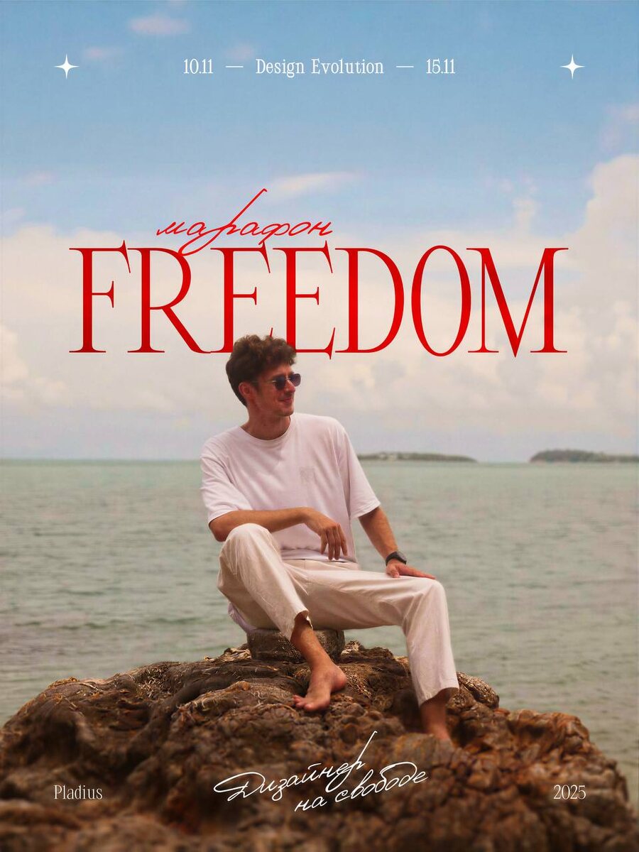 Марафон — FREEDOM ☁️☀️ Дизайнер на свободе — Design Evolution Я открываю набор на бесплатное мероприятие, где мы в течении 5 дней будем общаться про клиентов, дизайн, нейросети. Короче говоря — проведем вечера с нереальной пользой и атмосферой ❤️ — Обсудим много нужных сейчас тем, чтобы вы все пришли к фрилансу, рабочей свободе и стабильности) Подобные марафоны я делаю редко, поэтому и их качество говорит само за себя ⏺Что вас ждет? 12 ноября — Конкурс на лучшую обложку — Анонс домашнего задания Решил вам дать немного больше времени, чтобы все точно успели принять участие 13 ноября — Главнейший эфир открытие. Инфографика 2026 — 18:00 Темы эфира: 1 — Куда идет профессия и к чему надо быть готовым 2 — Нейросети и с чем их сейчас едят 3 — Поиск клиентов концентрат — Техники, подводные камни, психология 4 — Образуем все в план действий 14 ноября — Общаемся/отдыхаем и принимаю ваши работы 15 ноября — Разбор работ + итоги конкурса ( эфир ) ⸺⸺ Набор будет идти всего лишь несколько