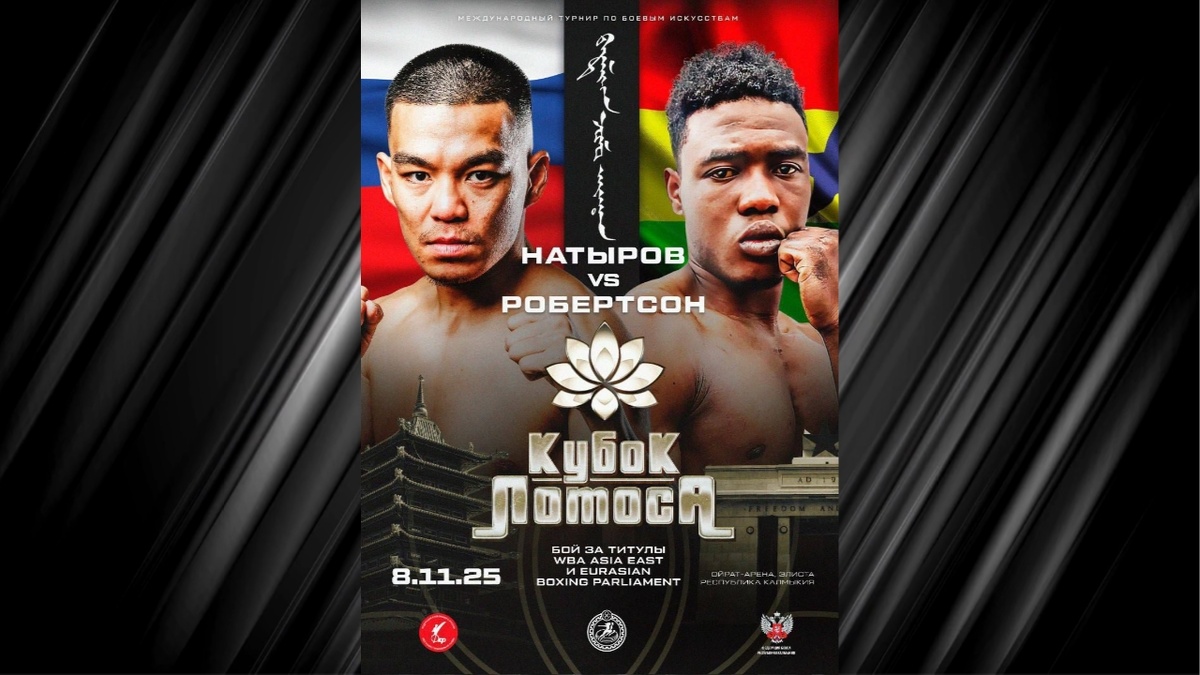 Международный турнир по боевым искусствам «Кубок Лотоса», ставший визитной карточкой Калмыкии, вновь пройдет в Элисте 8 ноября. Главным событием вечера станет защита титулов WBA ASIA EAST и Eurasian Boxing Parliament непобедимым «Калмыцким Бриллиантом» Чингизом Натыровым, который проведет свой десятый профессиональный бой. Об этом сообщает глава республики Калмыкия Бату Хасиков. Соперником калмыцкого боксера станет 20-летний Джерри Клутей Робертсон из Ганы, обладающий впечатляющим послужным списком: 6 побед в 7 боях, причем 5 из них – нокаутом. В этом году «Кубок Лотоса» соберет участников из России, Армении, Азербайджана, Ганы и Таджикистана. В программе турнира – поединки по боксу, кикбоксингу и национальной борьбе. Бату Хасиков подчеркнул, что «Кубок Лотоса» давно стал отражением характера и духа калмыцкого народа, для которого сила всегда сочеталась с честью и достоинством. «Кубок Лотоса» – это мост дружбы между народами, который мы строим через спорт. Рад, что с каждым годом турни
