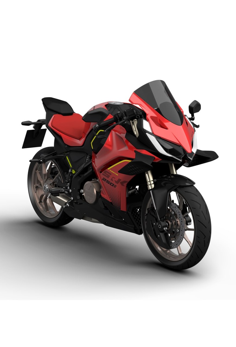 SRK 300 R1 воплощает чистую гоночную генетику в компактной, обтекаемой форме, объединяя эмоциональность «суперспорта» с универсальностью лёгкого мотоцикла. Передний обтекатель, разработанный по концепции Downforce Aero Design, направляет воздушные потоки от носовой части через боковые и нижние каналы, снижая сопротивление и создавая стабилизирующую прижимную силу. Это позволяет мотоциклу сохранять собранность и устойчивость даже на высокой скорости. Плавная линия, соединяющая бак и седло, формирует удобный «треугольник райдера», а высота сиденья 785 мм и смещённые назад подножки обеспечивают спортивную посадку. В основе мотоцикла — одноцилиндровый двигатель объёмом 299,1 см³, развивающий 24 кВт (32,6 л.с.) при 9000 об/мин и 27,5 Н·м при 6500 об/мин. Он отличается мгновенной, но предсказуемой реакцией на поворот рукоятки газа и уверенной тягой в среднем диапазоне оборотов, обеспечивая контроль и удовольствие от каждой поездки. Лёгкая стальная трубчатая рама, дорожный просвет 135 мм и ма