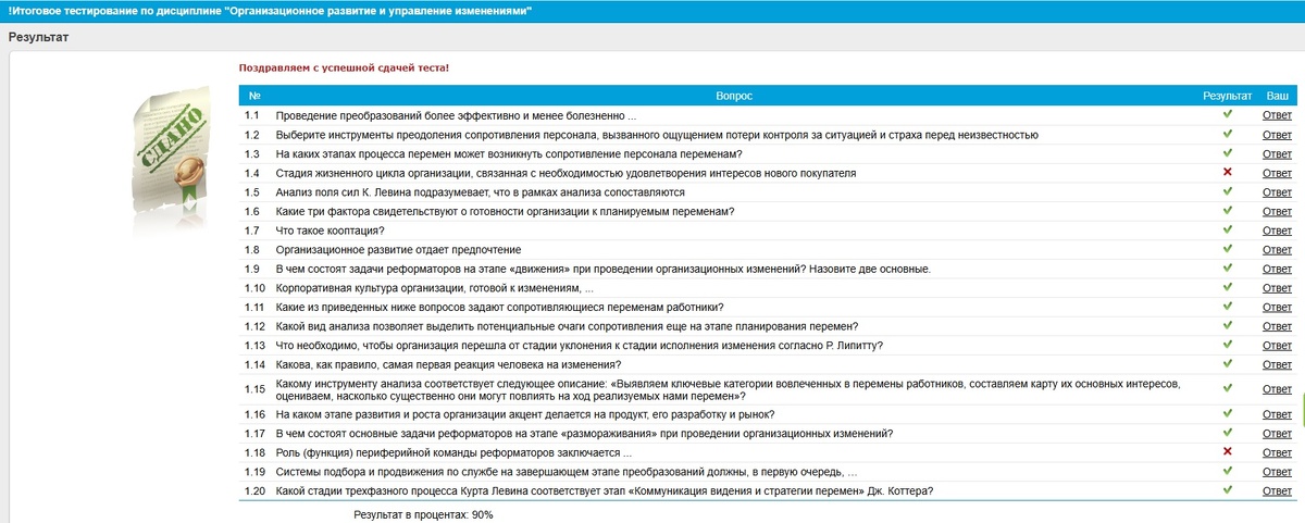 Перед вами — финальный тест MBS. Этот тест поможет систематизировать знания по дисциплине «Организационное развитие и управление изменениями» и выявить слабые места.