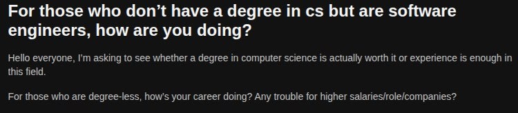 На реддите парень спрашивает, насколько вообще нужен диплом по компьютерным наукам в разработке