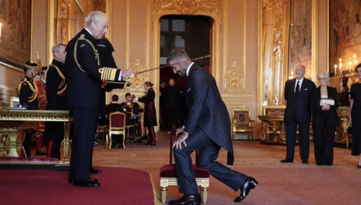 Дэвид Бекхэм. Легендарный футболист. Владелец «Интер Майами». Стал рыцарем британского королевства! Карл III посвятил его в Виндзорском замке. По всем канонам - с мечом на плече. Телеграм канал Медиа новости