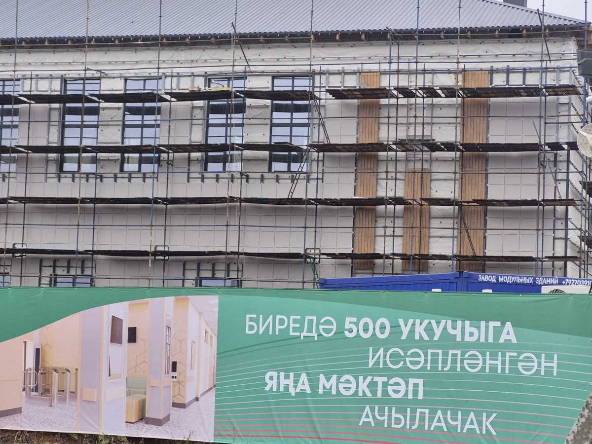 В Мензелинске вот такое прекрасной объект возводится. Здание школы на 500 учеников начали обшивать керамогранитной плиткой.