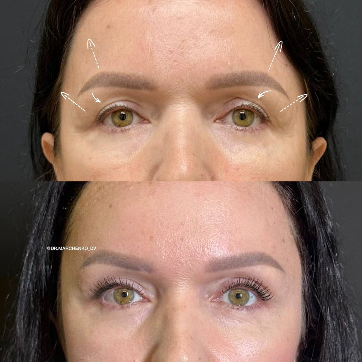 ✨ Эндоскопический лобно-височный лифтинг — естественное обновление без признаков операции. На фото — пациентка до и после эндоскопического фронто-темпорального лифтинга. ⠀ Это именно тот случай, когда хирургическое вмешательство позволяет достичь максимально естественного результата. Пациентка не хотела, чтобы лицо выглядело «прооперированным» или чтобы были видны следы операции. Её пожелание — просто освежить внешний вид, сделать лицо более открытым, молодым и приятным, сохранив при этом индивидуальные черты. ⠀ Благодаря эндоскопической технике лифтинга удалось мягко приподнять наружный хвост брови, разгладить область лба и висков, раскрыть взгляд. Результат — лицо выглядит более отдохнувшим, без эффекта «натянутости». Пластический хирург Марченко Денис Владимирович. __________ Этот пост несёт исключительно информационный характер. Имеются противопоказания, необходима консультация специалиста. Запись на консультацию 👇🏻 ☎️ +7 (999) 329-97-88 ✉️ Messenger.