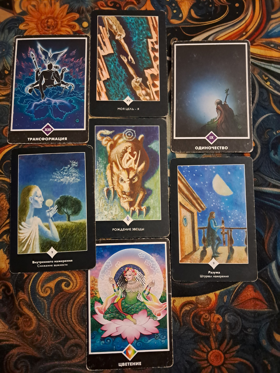 Это очень глубокая и важная тема. (Расклад что хотят вам сказать высшие силыи о чем предупреждают. 🤔 ) Объединение учений Ошо (Дзен, трансформация) и Вадима Зеланда (Трансерфинг) дает мощную систему ориентиров для человека на пути внутреннего роста. Давайте расшифруем эти символы и послания как единое целое. Высшие Силы (или ваше Высшее "Я", подсознание, Вселенная — в зависимости от вашей терминологии) через такой набор концепций хотят донести последовательность этапов глубокой внутренней трансформации и предупредить о ключевых ловушках на этом пути. Вот расшифровка этого "послания": Общий смысл: Этапы Преображения Это не случайный набор, а четкий маршрут от страдания к свободе. 1. ОШО: Дзен, трансформация, одиночество и цветение — это ОСНОВАНИЕ. · Дзен: Вам указывают на необходимость осознанности и принятия "здесь и сейчас". Прекратите борьбу с реальностью. Наблюдайте за своими мыслями и эмоциями, не отождествляясь с ними. Это база для всего последующего. · Трансформация: Вас готовя
