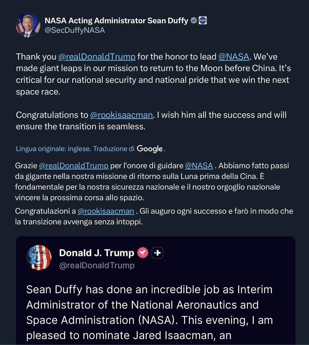 Даффи, благородно, отвечает: "Поздравляю, Джаред! Я обеспечу плавный переход. Без интриг, как в 'Игре престолов'." В соцсетях троллят: мол, Трамп "выстрелил" Даффи, как в корпоративной мясорубке, и поставил единорога вместо бюрократа. Смешно? Абсолютно. Потому что NASA — это не только ракеты, но и бюрократия толщиной в световой год. А теперь туда врывается парень, для которого "переход" — это апгрейд от Falcon 9 к Starship. Сможет ли стартапер управлять бюрократической махиной?