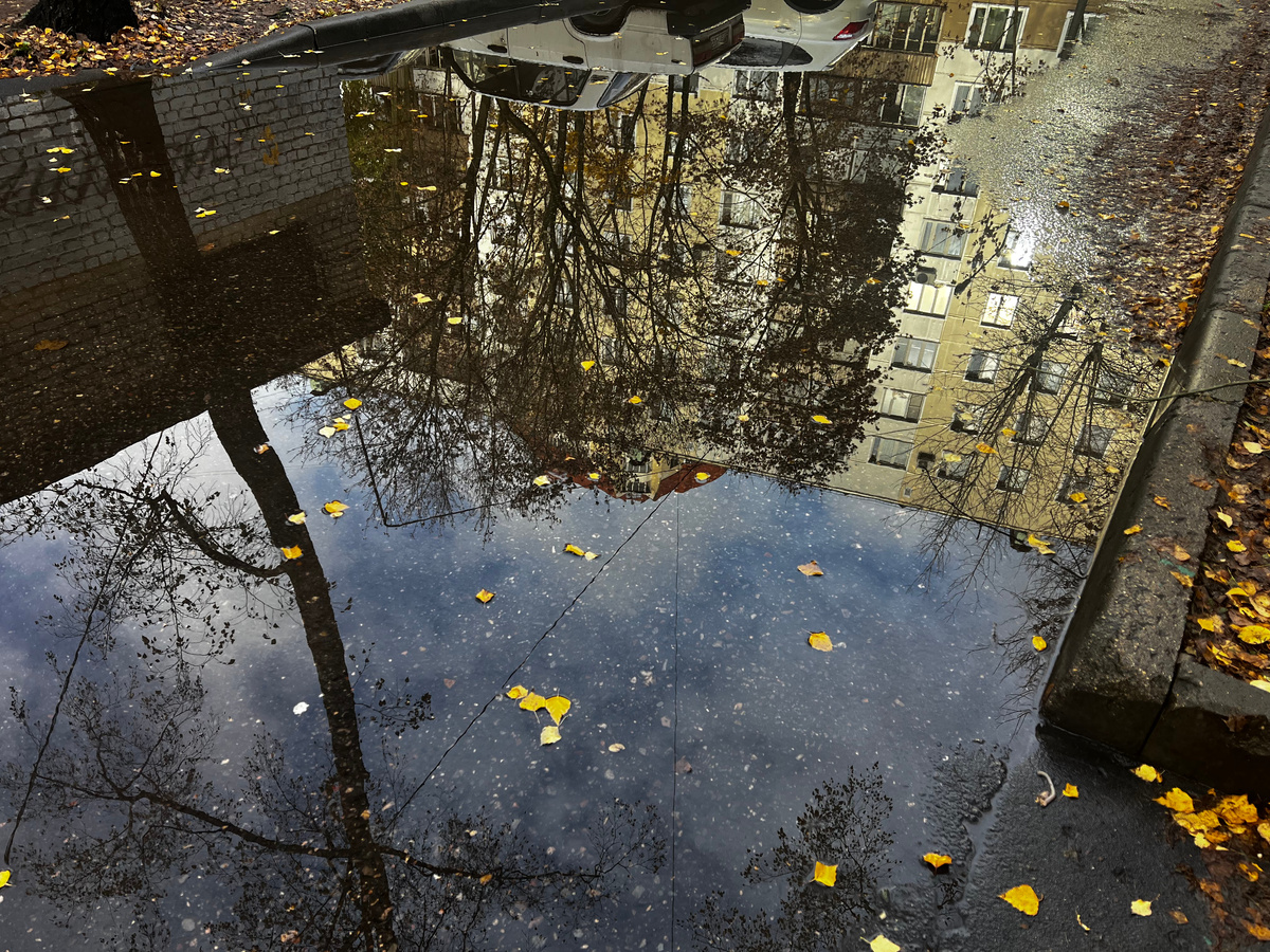 Вот простое отражение осени в городской лужице на заставке статьи. Мимо нее проходят спешащие по делам прохожие и нехотя обходят препятствие стороной, боясь замочить ноги.