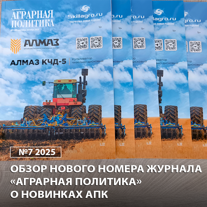 ❗️Представляем вашему вниманию новый номер журнала о новинках и инновациях АПК «Аграрная политика». В №7 (сентябрь-октябрь 2025) вошли следующие материалы: — «АЛМАЗ» представит три новинки почвообрабатывающей техники на «ЮГАГРО 2025». — Опыт применения грейдера «Сколот» в КФХ Схаляхо Р. Ш. — Опыт обработки подсолнечника новыми российскими дронами DRONEX® AGRO30. — Новые российские промышленные дроны компании «Аэродин». — Беспилотный трактор AGDY T-1. — RSM 161 не боится сложностей уборки. — Перспективные культуры от Германского Семенного Альянса. — Отечественные сорта рапса от СибАгроЦентра: востребованная культура с широким спектром применения. — Новые сорта и гибриды кукурузы и подсолнечника. — Рецепт рапса по-уральски от Щелково Агрохим. — Новые российские сорта сои. — Обзор новой почвообрабатывающей техники. — Обзор новых культиваторов. — Новые модели комбайнов Гомсельмаш. — Обзор новых телескопических и мини-погрузчиков. — Антисептический, ранозаживляющий и репеллентный комплекс в