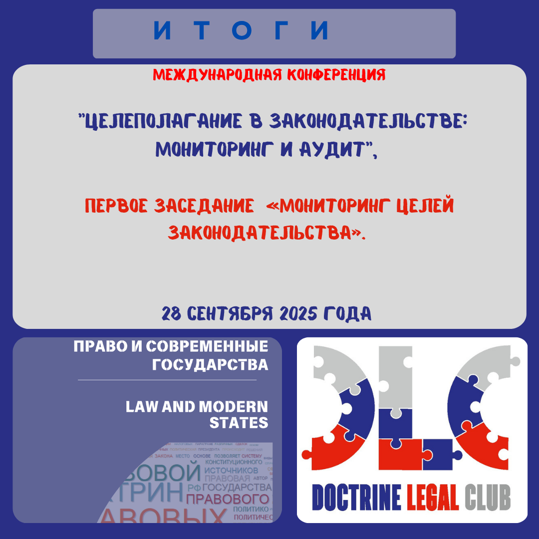 28 сентября 2025 года состоялось первое заседание в рамках Международной конференции «Целеполагание в законодательстве: мониторинг и аудит». Конференция проводится Клубом Правовой Доктрины в сотрудничестве с журналом «Право и современные государства».