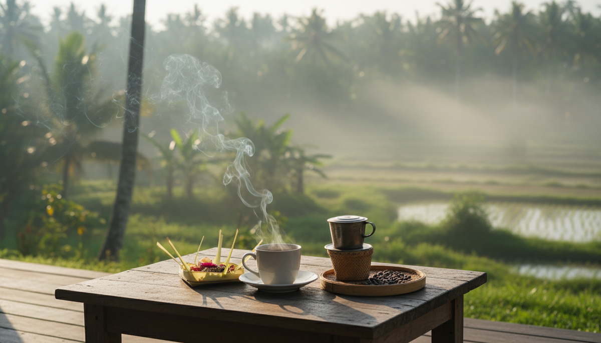 Есть места, которые врезаются в память образами. Бали же врезается в душу запахами. Это тайный код, пароль, по которому твое сердце безошибочно узнает: ты дома. Даже с закрытыми глазами. Особенно с закрытыми глазами. Ты просыпаешься не от будильника, а от тонкого, сладковатого аромата сандалового дерева и жасмина. Это с уличных алтарей — маленьких корзиночек чананг-сари, которые остров подносит в дар богам. Воздух еще прохладен, а в нем уже плывут эти струйки дыма, смешиваясь с терпким, густым запалом свежесваренного кофе с соседней кофейни. Не просто кофе, а балийского, с едва уловимыми нотами темного шоколада и специй. Это запах уважения и нового дня. Когда солнце поднимается высоко, его лучи разогревают дерево, выпуская наружу тёплый, смолистый аромат тикового дерева. На рынке в это время — настоящее буйство красок и запахов: острый имбирь, дымный куркума, свежий лимонграсс и сладковатый тамаринд. Воздух густой и пряный, им можно почти что насытиться. Ты едешь на скутере, и ветер бь