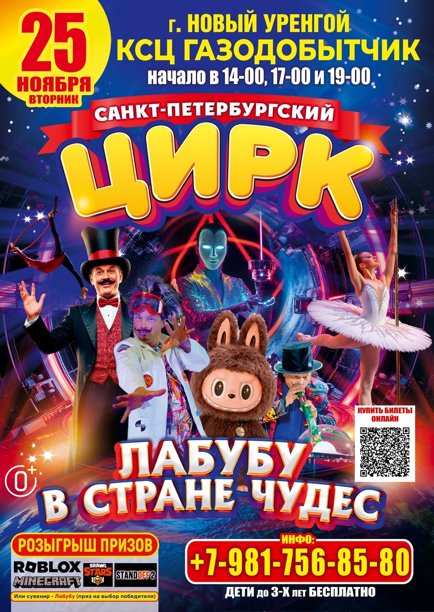 Бесплатные билеты в цирк! Санкт-петербургский цирк дарит 20 билетов на премьеру фантастического шоу "Лабубу в стране чудес". 25 го ноября КСЦ Газодобытчик. Условия розыгрыша: 1. Подписаться на [club160834696|Цирк из Санкт-Петербурга Новый Уренгой!] Нажать "я пойду". 2. Сделать репост конкурсной записи в их группе. 3. Отметить в комментариях с кем пойдёте к нам в гости, через знак @ . Не забудьте открыть вашу страницу на время проведения розыгрыша. • Дети до 3х лет – бесплатно (включительно, при наличии подтверждающих документов. 1 взрослый = 1 ребёнок). Купить билеты онлайн - https://circusdrive.edinoepole.ru/widget/performances/5?roistat_id= Справочная служба цирка: 8-981-756-85-80 Победителей конкурса объявим в нашей группе 16 го ноября! Категория 0+