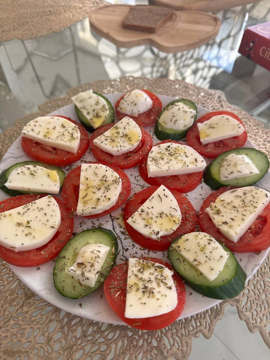Один из любимых быстрых перекусов у нашей семьи: огурцы и помидоры с моцареллой, политы оливковым маслом и посыпаны прованскими травами. Супер полезно, низкокалорийно, всегда вкусно и готовится (если это можно так назвать) минут 5. Берите на заметку