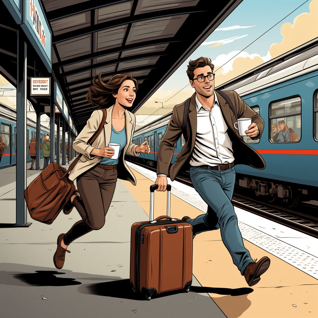 — Да ладно, кофе всё равно уже холодный, — усмехнулся он, глядя, как она пытается удержать разваливающийся ремень чемодана. Это было не «любовь с первого взгляда». Это было «помочь затянуть ремень, уточнить номер платформы, обменяться парой фраз о непредска
