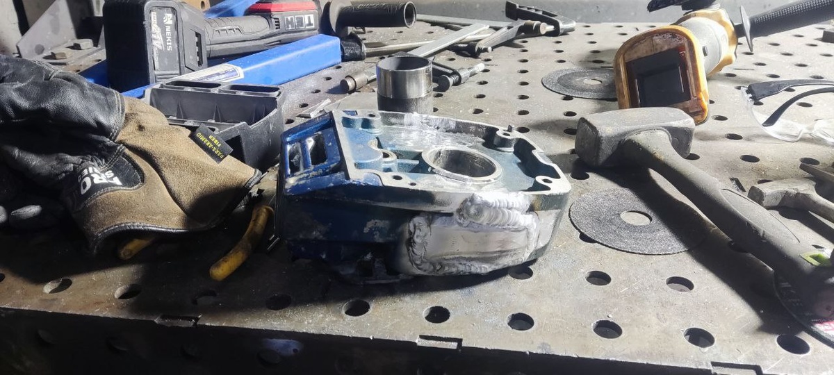 Выточил по диаметру подшипника вставку. Собрал на вставке. Сварил. Усилил. Думаю : работать будет