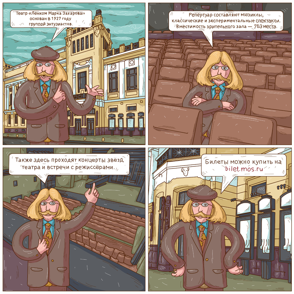 Сайт театра: https://lenkom.ru/ Изначально театр назывался «ТРАМ» - Театр Рабочей Молодёжи. Он был создан в 1927 году как студия при МХАТе, чтобы дать дорогу талантливой молодежи из рабочей среды. Здание театра на Малой Дмитровке само по себе памятник. До революции здесь располагался Купеческий клуб, знаменитый своими азартными карточными играми, богатыми балами и самыми модными в Москве танцевальными вечерами. До прихода Марка Захарова в 1973 году театр переживал глубокий творческий кризис и был на грани закрытия. Захаров, тогда молодой и не очень известный режиссер, буквально взорвал театральную Москву своими новаторскими, остроумными и музыкальными спектаклями, сделав «Ленком» одним из самых популярных театров СССР. С 1990 года театр носит название «Ленком». 21 ноября 2019 года театру было присвоено имя Марка Захарова, и теперь он официально называется «Московский государственный театр „Ленком Марка Захарова“»